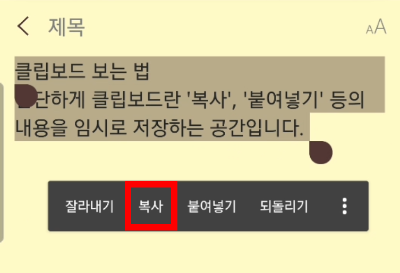 클립보드 메뉴를 터치하면 그동안 복사해두었던 내용들이 모두 보여집니다.