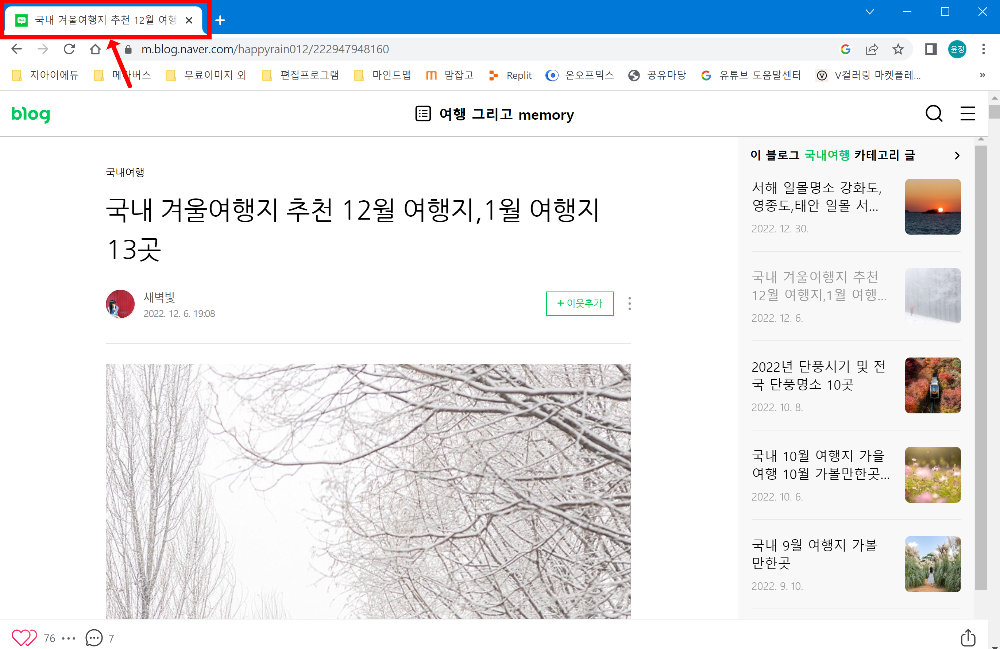 어떤 내용이든 검색해도 상관없지만 저는 '겨울 여행지'라고 검색해 보았습니다.
