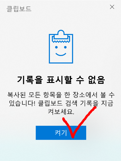 혹은 단축키를 이용하여 바로 클립보드를 켤 수도 있습니다.