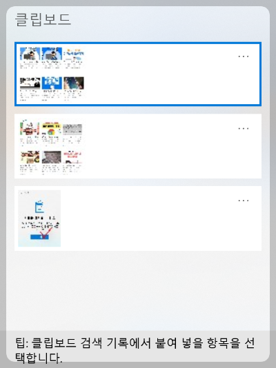 클립보드 창에는 기존에 복사해두었던 항목들이도 모두 나타납니다.
